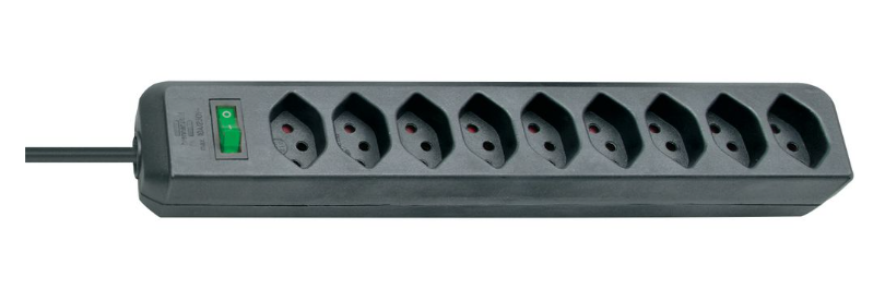 Brennenstuhl Elosztó Eco-Line 9x CH J típusú (T13) aljzat - CH J típusú (T12) dugó Fekete 2m