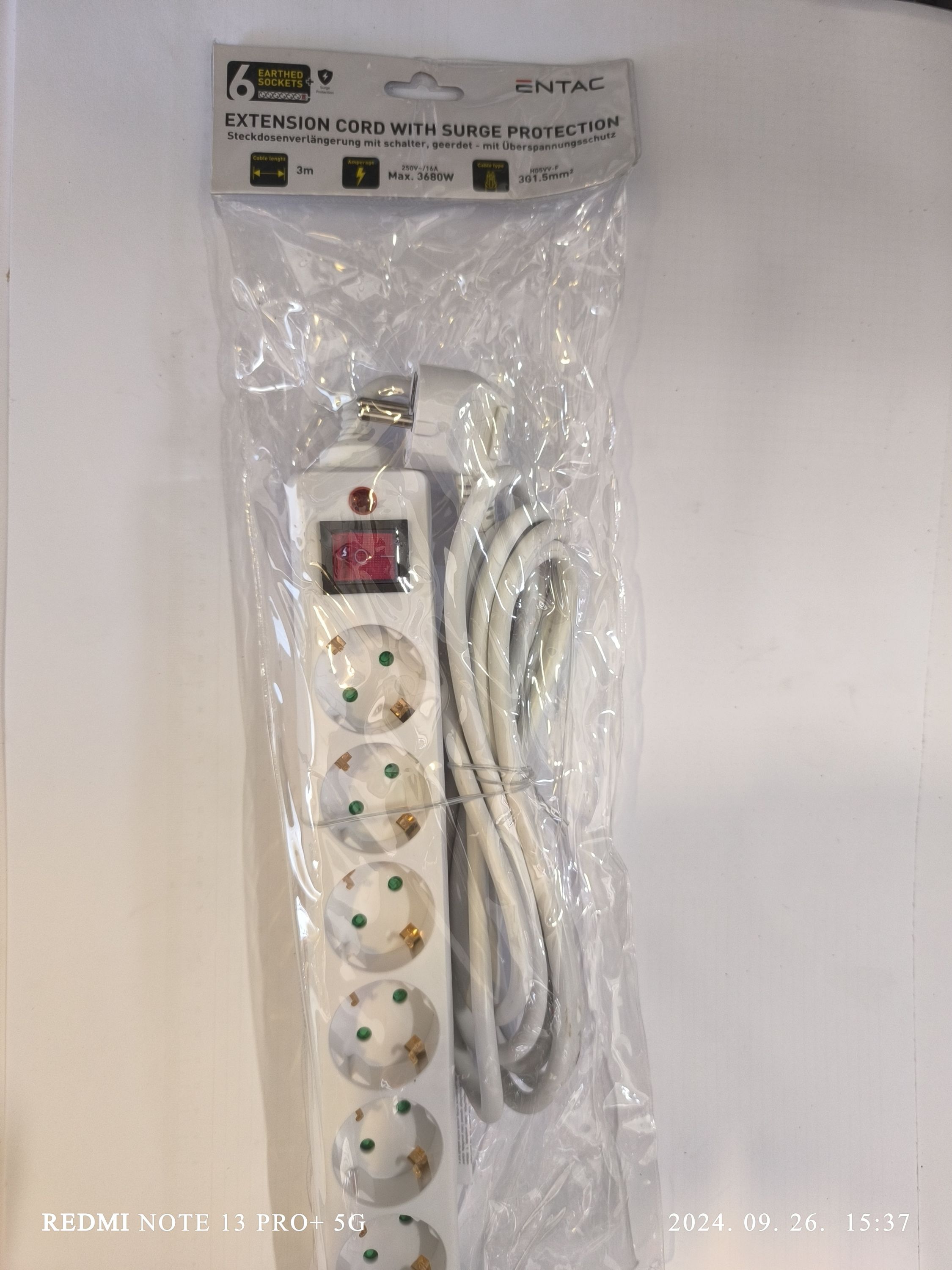 ENTAC elosztó 6 foglalat kapcsolóval 6m 3G1,5mm2