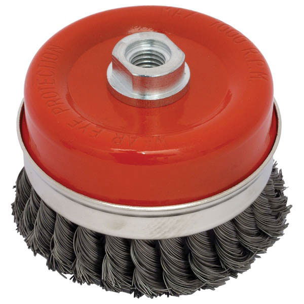 Erős igénybevételű használatra a sodort acéldrót kivitelű fazékkefét ajánljuk. M14 menetű, erős acélházba vannak rögzítve a drótszálak. A fazékkefék különböző átmérőkben sík felületek megmunkálására elsősorban. A nagyobb méretűek előkészítő míg a kisebb méretűek preciziós munkákra használhatók.