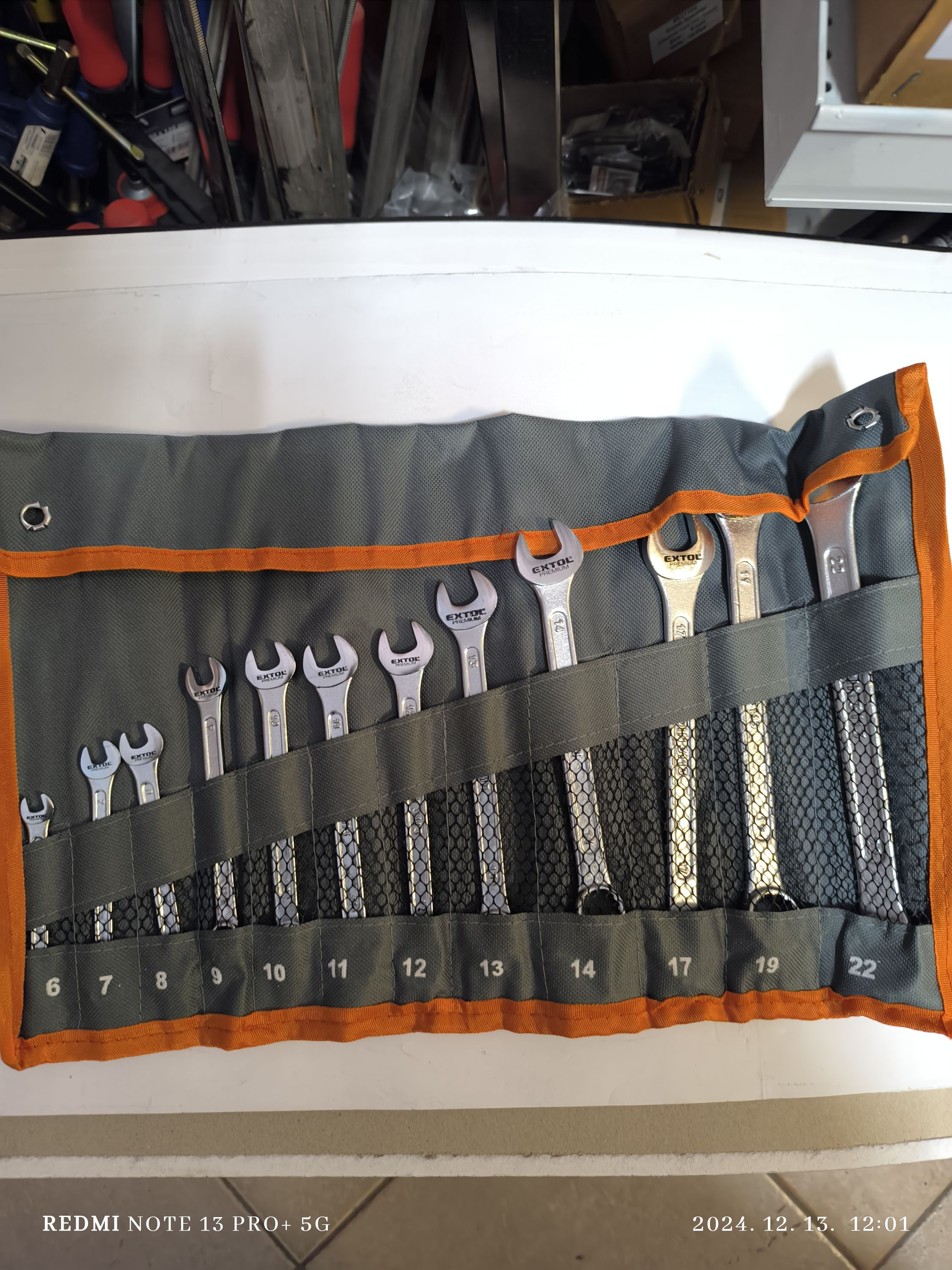 EXTOL PREMIUM Csillag-villás kulcs készlet, CrV, vászon tartóban 12 részes