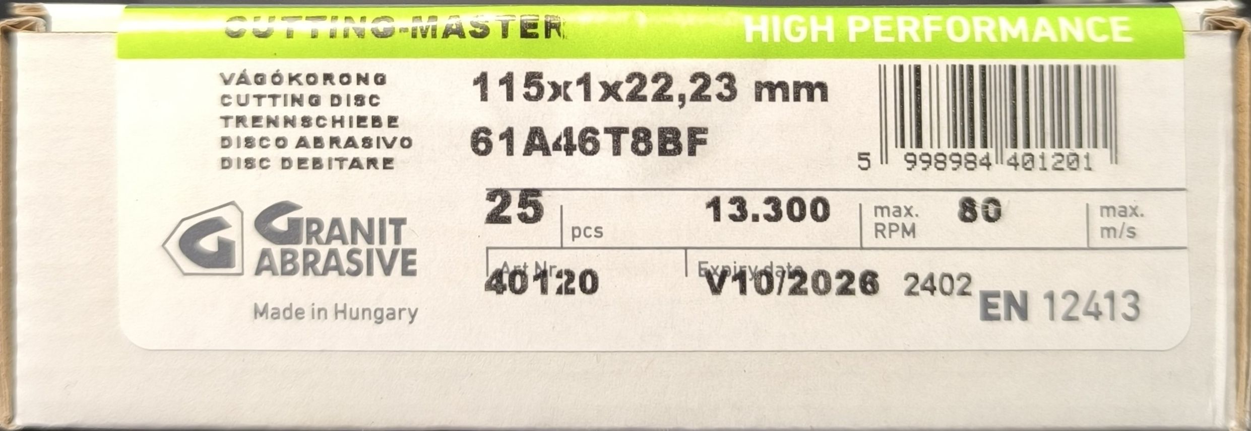 GRANIFLEX Vágókorong egyenes INOX, CUTTING-MASTER 115x1x22,2
