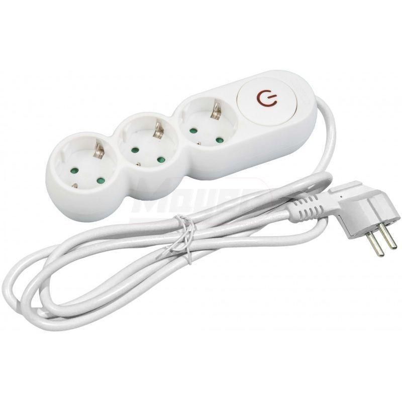 ENTAC Hosszabbító kábel, 3 aljzattal, kapcsolóval, 3 m, kábel 3G1,5, IP20, fehér
