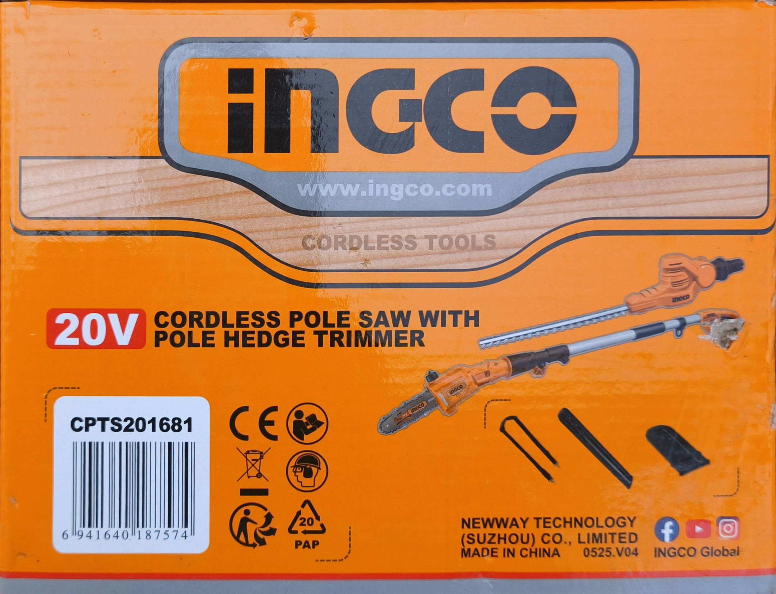 INGCO Akkus magassági sövény 460mm és ágvágó 200mm 0-400mm 20V (1x2,0 Ah akku + töltő)