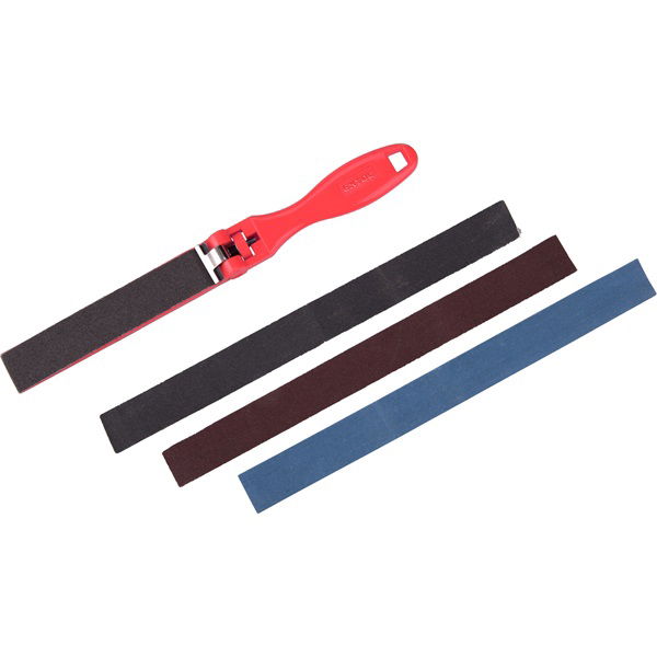 4 db cserélhető 270×24 mm-es szalag, finomság: P150, P200, P300, P400