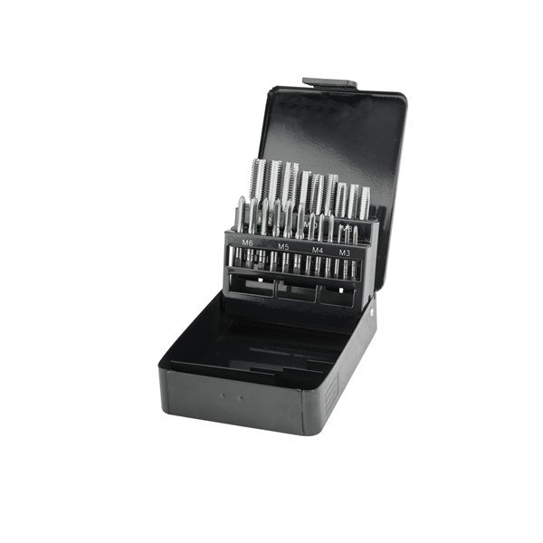 EXTOL Menetfúró készlet kézi, fém dobozban; 21db, M3,4,5,6,8,10,12, jó minőségű szénacél, hajtóvas nélkül