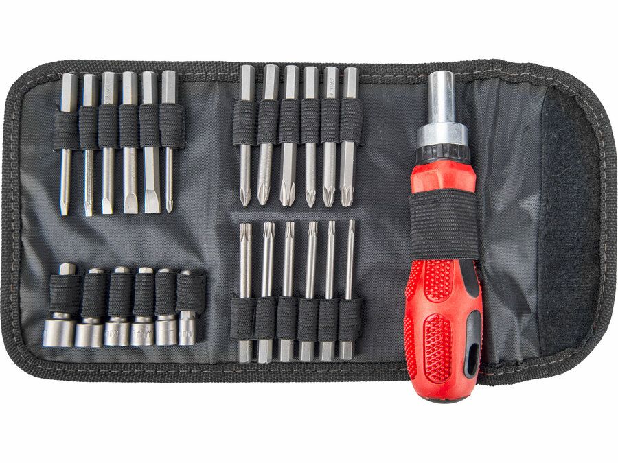 EXTOL Racsnis csavarhúzó-dugókulcs készlet, 25 db, Cr.V. acél