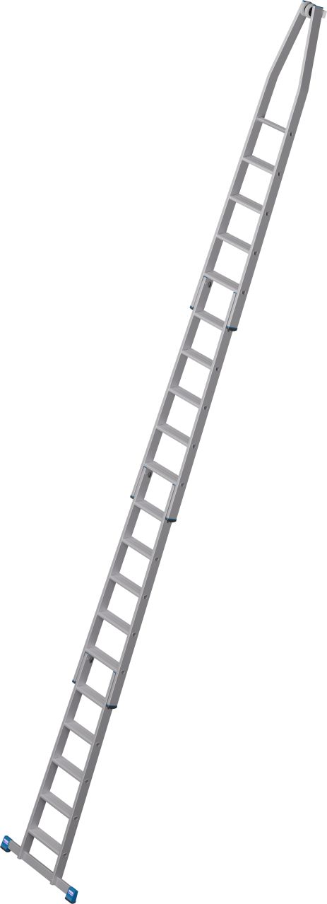 - A létra felső tagja fali vezetőgörgőkkel és kopásálló, puha gumi anyagú érintkező blokkal, ékkivágással, mely házsarkokra és ablakprofilokra helyezhető.