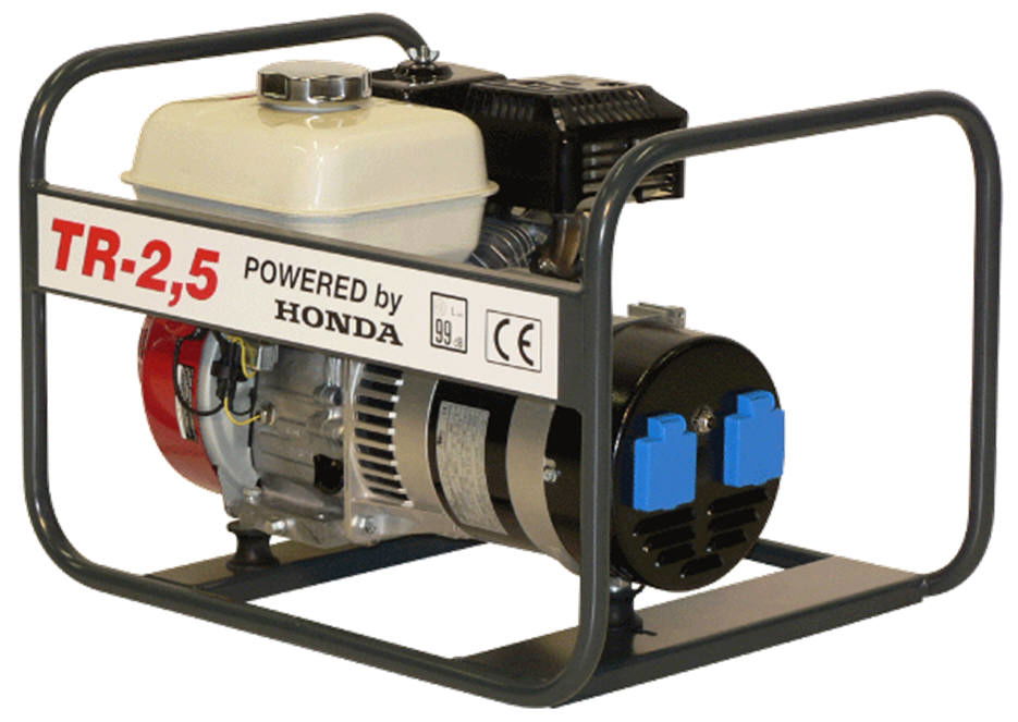 A HONDA benzinmotoros áramfejlesztők kiválóan alkalmasak építési munkahelyek áramellátására, hálózati feszültség pótlására. A HONDA benzinmotor igen hosszú élettartamot és gazdaságos üzemeltetést biztosít. Kedvező az üzemanyagfogyasztása, csekély a karbantartási igénye, valamint a szerviz- és alkatrészellátottság is kiváló. Üzemanyaga 95-ös oktánszámú ólommentes benzin, a fordulatszám 3000 /perc. A fogyasztási adatok teljes terhelésre vonatkoznak, a gyakorlatban a fogyasztás a megadatoktól lényegesen kisebb. A gép alapkeretre szerelt, burkolatlan kivitelű. A zajszint 95 dB alatt van. A védettség IP23.
